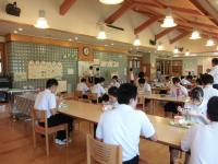 本校では、小中交流の一環として、ランチルームでの一斉給食を行っています。