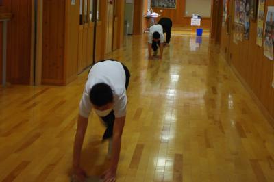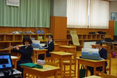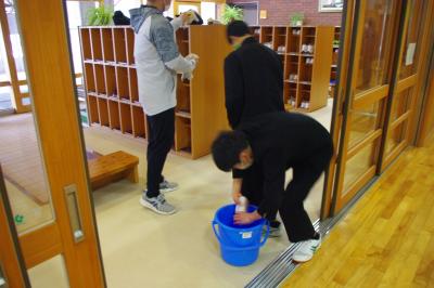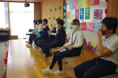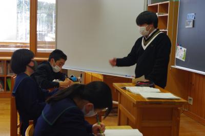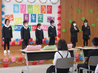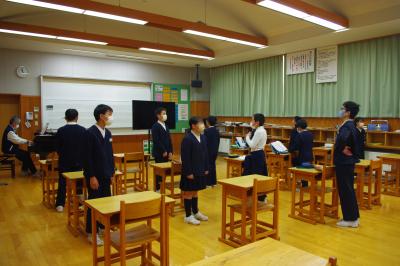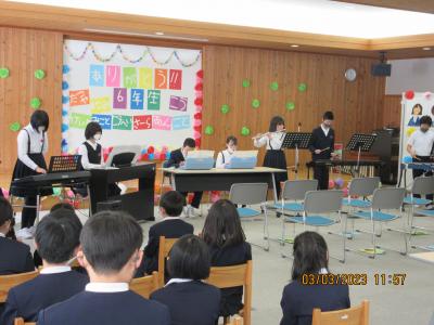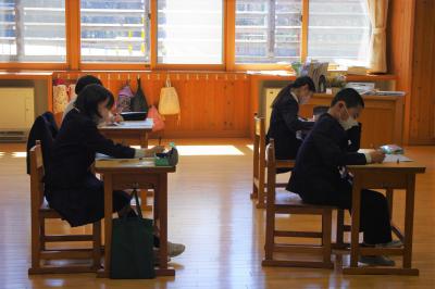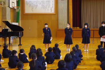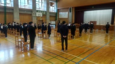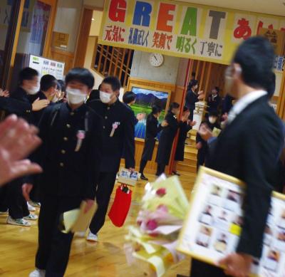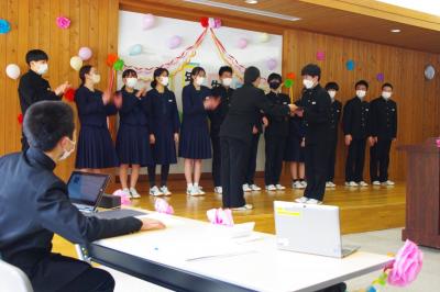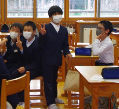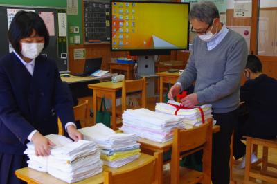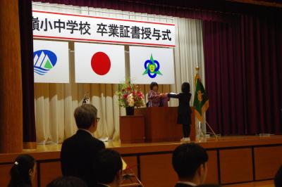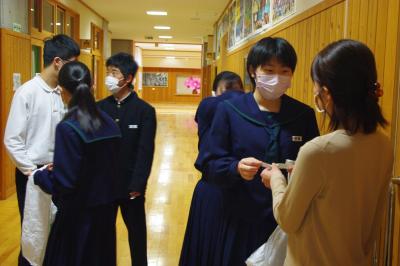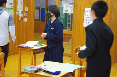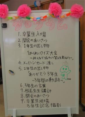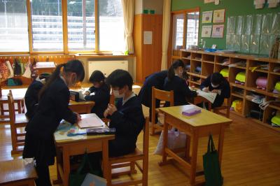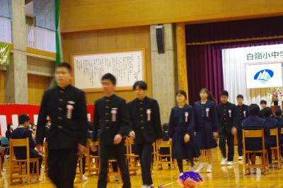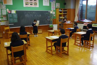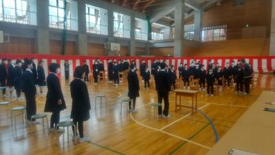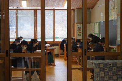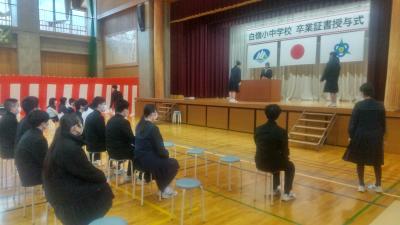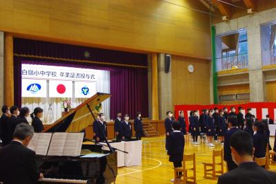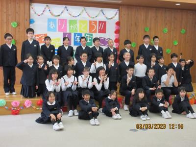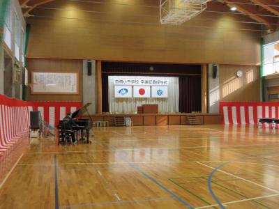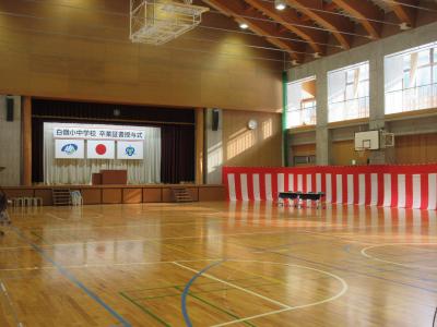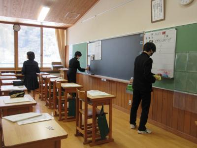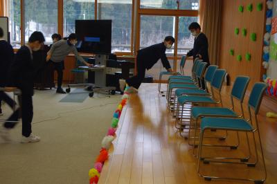 月曜日の卒業式に向けて、全校児童生徒で予行演習を行っています。校舎の清掃や飾り付けも行っています。