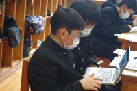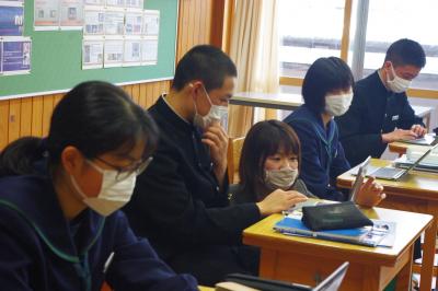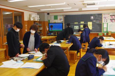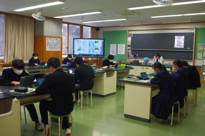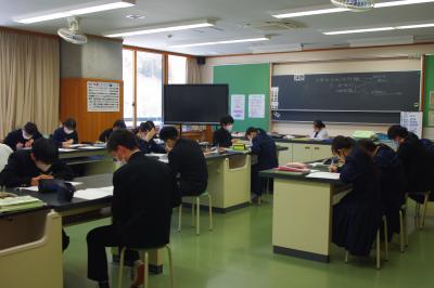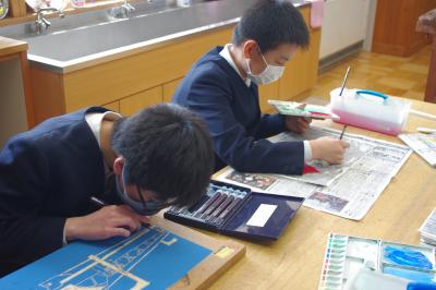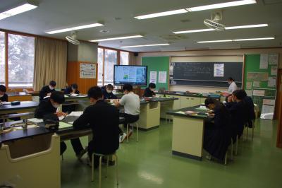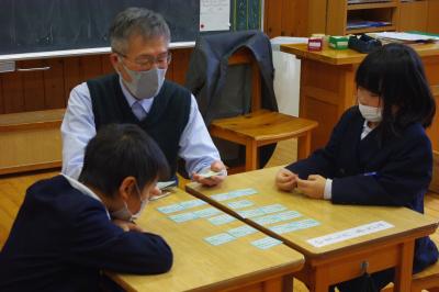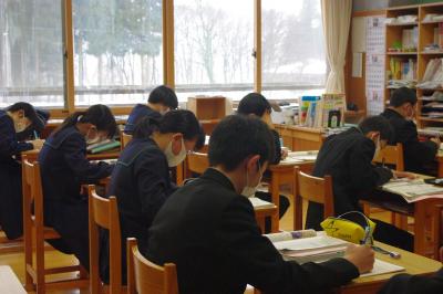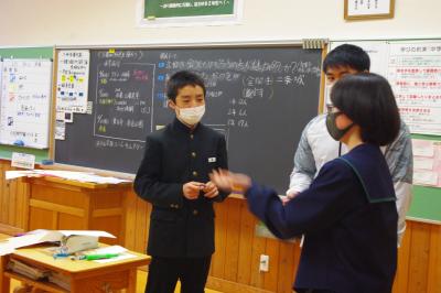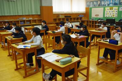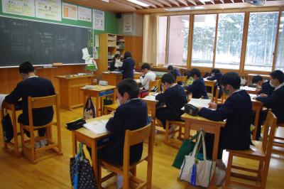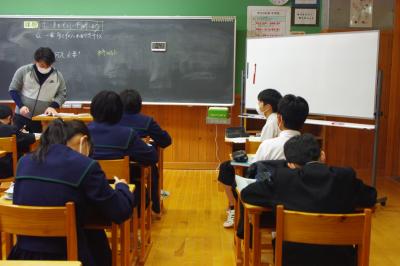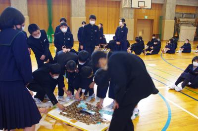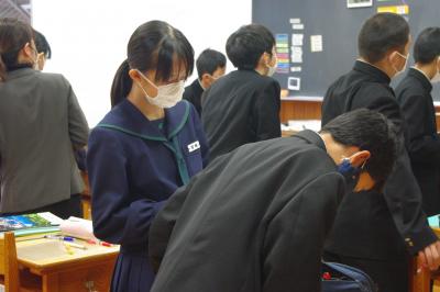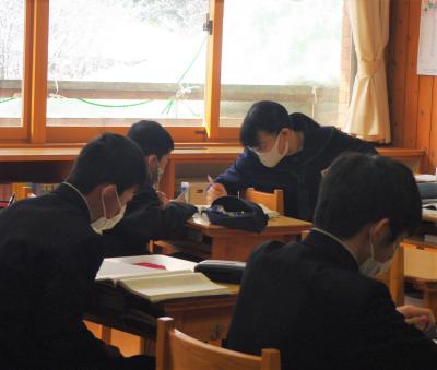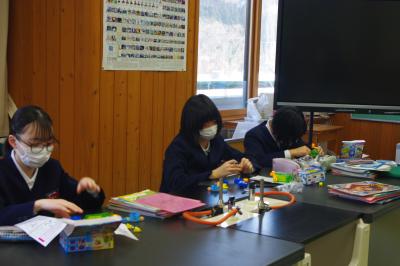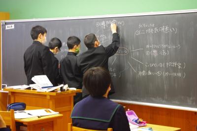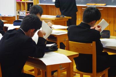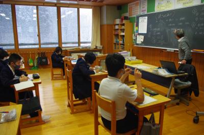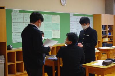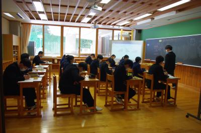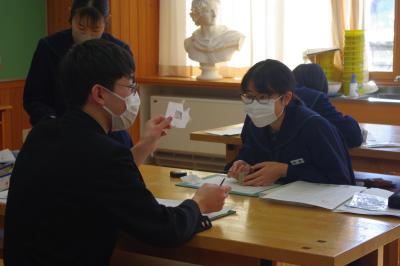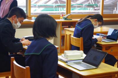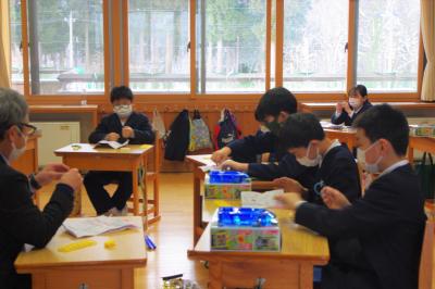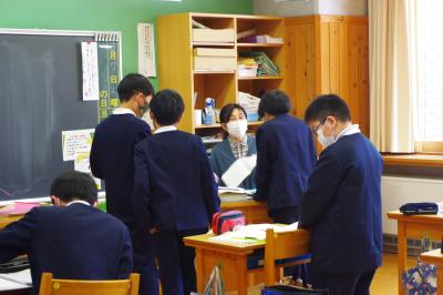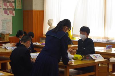 社会 経済を学ぶ一環として、各自が100万を国内株式で運用すると想定し、銘柄を選んでいました。100万円がいくらになったのか結果発表され、順位に応じてノートやホビーグッズなどの景品が贈呈されています。公立入試も終わり、リラックスした中で盛り上がっています。