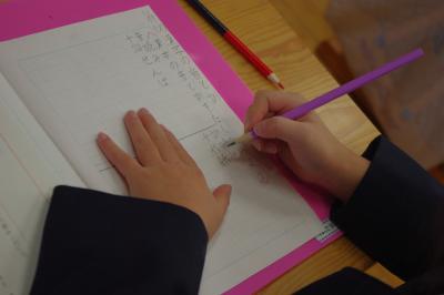 国語 年度末に校内で発行する文集の原稿を書いています。飼育してきた虫との思い出について書くようです。