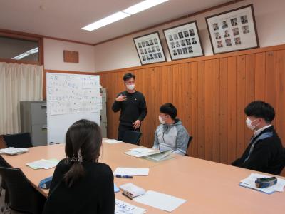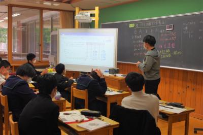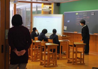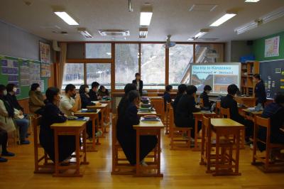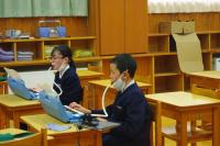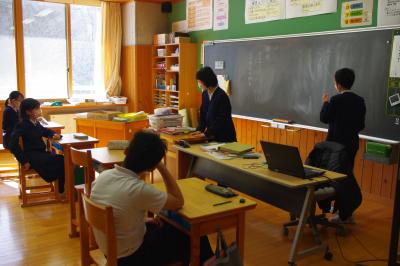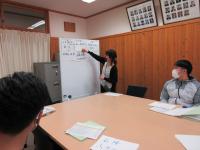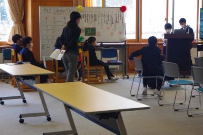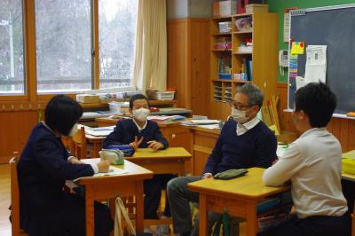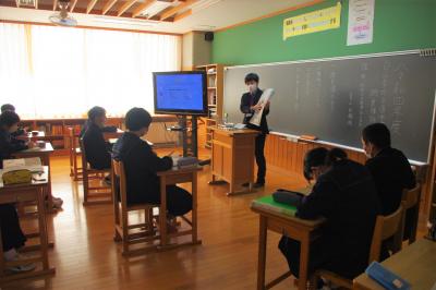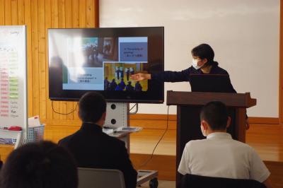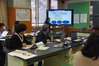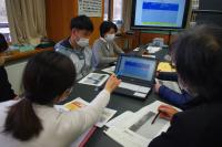 若手の先生の今年度最後の校内研修会を行っています。今年学んだことや来年度の抱負について発表しています。