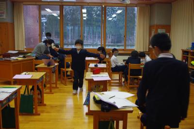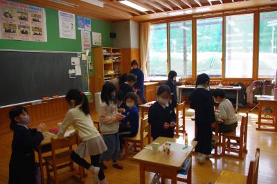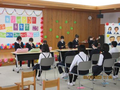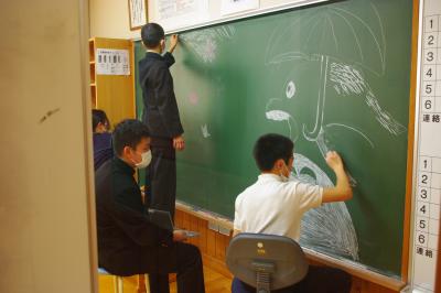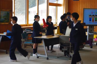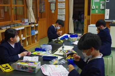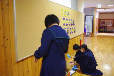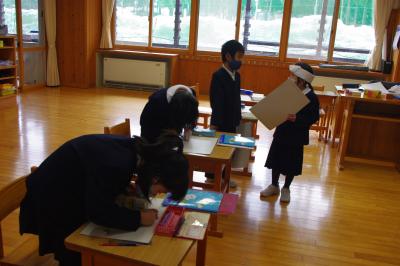 6年生を送る会の準備。内容は当日まで内緒とのことです。