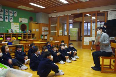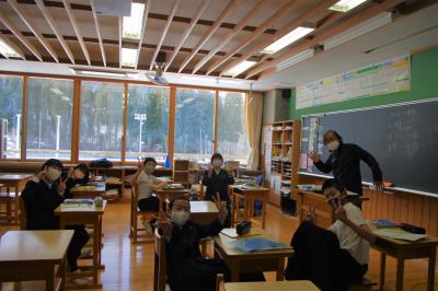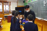 環境教育 白山市環境課と北菱電興さんが授業をしてくれています。地球温暖化の影響や水力発電の仕組みなどを楽しく学んでいます。