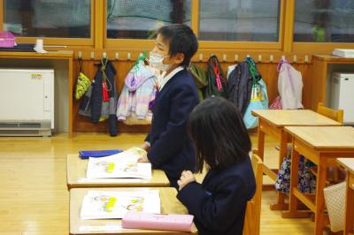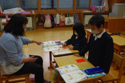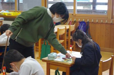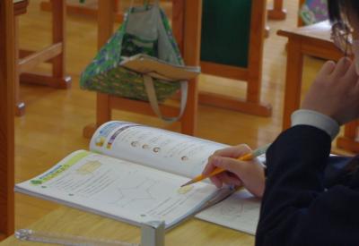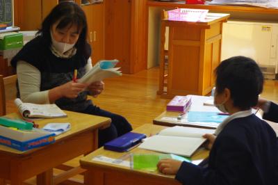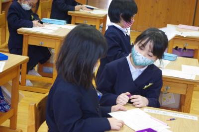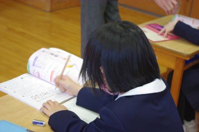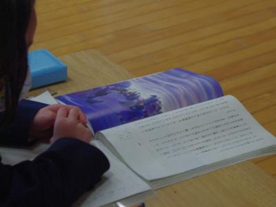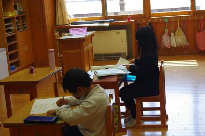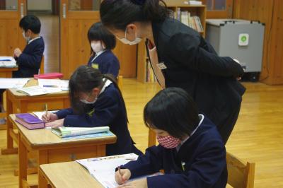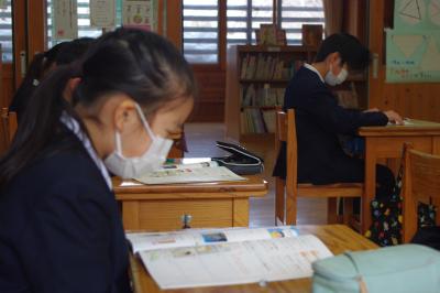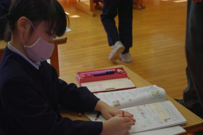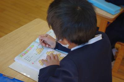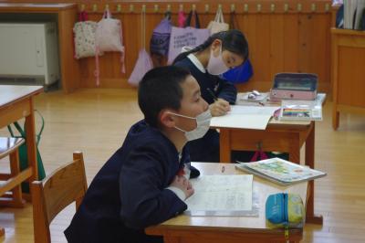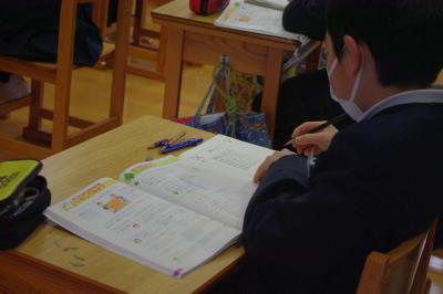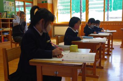 国語 確認問題に取り組んでいます。もうすぐ「先輩」になりますね。