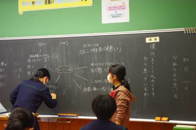 道徳 友達について考えています。物語の登場人物の言動について掘り下げて考えています。たくさんの意見が発表されています。