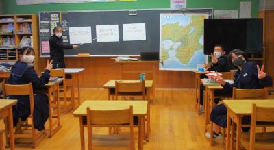 社会 中国・四国地方の特徴について、知っていることを発表しながら学んでいます。