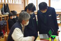 外国語 日本の文化に関する会話を聞き取り、何について話しているのかをクイズ形式で考えています。「着物」や「おもち」についてだと聞き取っています。
