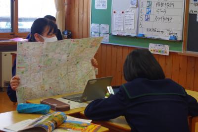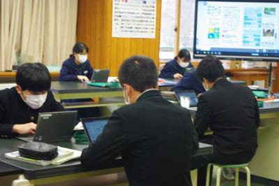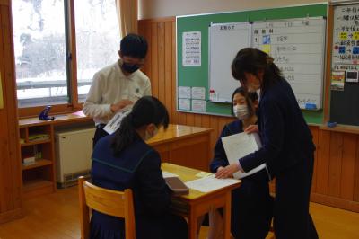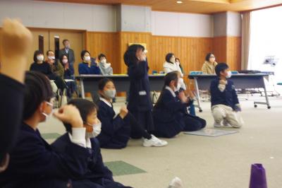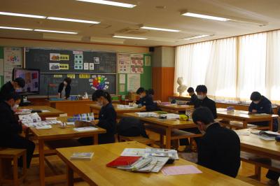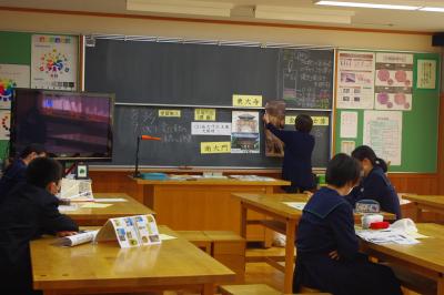 総合的な学習の時間 明日は沖縄うるま市中学2年生代表団12人との本校中学1・2年生が交流活動を行います。総合的な学習でまとめた「今後の生き方」に関するプレゼンテーションのリハーサルや、交流会の掲示物を準備しています。この一年で培った「表現力」や「伝える力」を発揮してくれることでしょううるま市の皆さんからも沖縄の文化や歴史の紹介、エイサーの披露が予定されており、皆楽しみにしています。小学校4~6年生も参観する予定です。