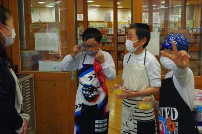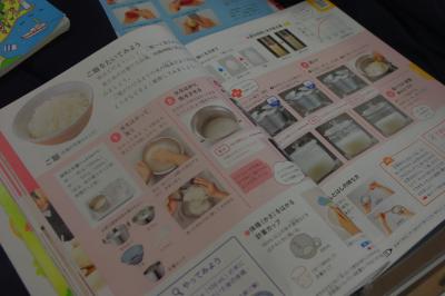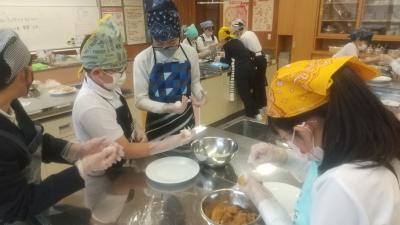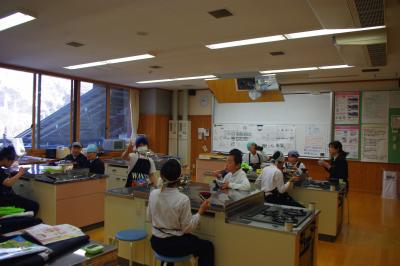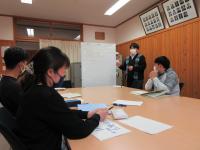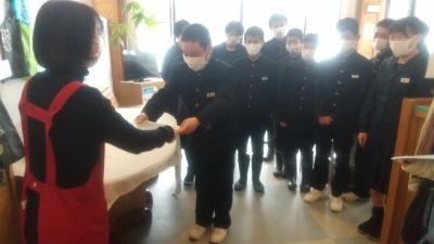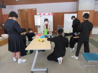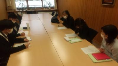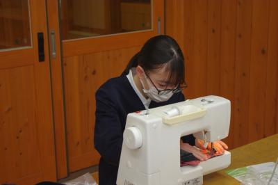 家庭 在校生に贈る雑巾作成について話し合っています。
