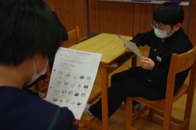 英語 学習した過去形を使い合ってペアで会話を行っています。