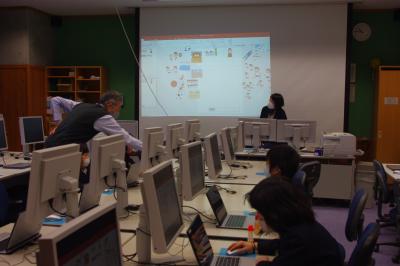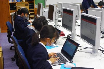 新一年生向けて行う学校紹介の資料をパソコンで作っています。