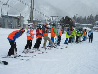 体育 1月と2月のスキーシーズンには、毎週金曜日に一里野温泉スキー場にて体育の授業を行っています。今日は1回目のスキー授業です。