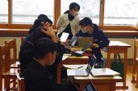 学校の展望台に立ったうるま市の生徒から「最高!! 最高!!」と歓声があがっていたので、何が最高なのか尋ねると、「この雪景色が最高です!!」との答えが。私たちにとっては見慣れた雪景色でしたが、改めて、身近にある自然の魅力や価値を再認識することができました。