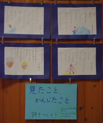 掲示物「お友達に送る詩」と題して、クラスメイトに送りたい詩を掲示しています。