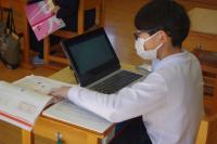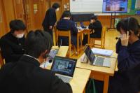 国語 端末のアプリを使って語順を並び替える練習を行っています。