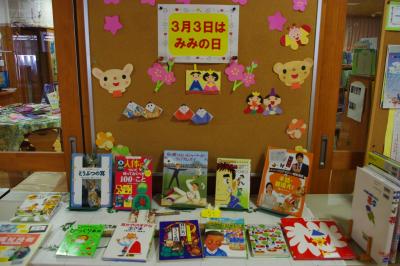 うさぎ年にちなんで、図書室前にはうさぎに関する本のコーナーを設けています。