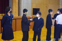卒業式の証書授与や卒業記念品授与の練習を行っています。