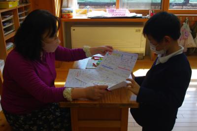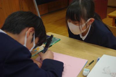学級活動 メッセージカードを作っています。誰に渡すんでしょうか?
