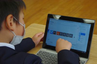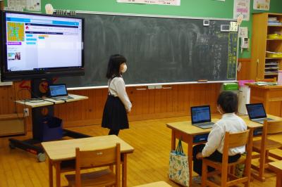 算数 プログラミングの学習を行っています。ICTサポーターさんからも教えてもらっています。