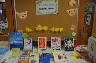 図書館前には卒業にちなんだ本のコーナーを設けています。