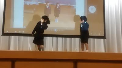 総合的な学習の時間 体育館で白嶺祭の発表練習をしています。
