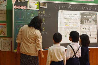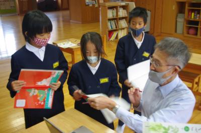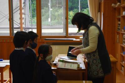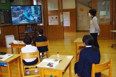 道徳 「かいらんばん」というお話を通して、地域の人々が交流を重ねたり生活を豊かにしたりしてきたことについて考えています。