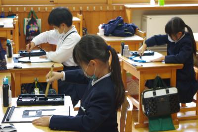 国語 中学校では明日、全校一斉に俳句作りを行いますが、今日はその準備をしています。