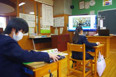 国語 白嶺祭の発表で使う動画を撮影し、その出来映えを確認しています。