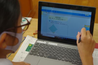 習熟度に応じて自動構成された問題を解く「eライブラリ」を、端末を使って行っています。