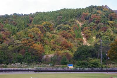 学校前の山が色づいてきています。学校では肌寒さを感じる日が続いています。ご自愛ください。