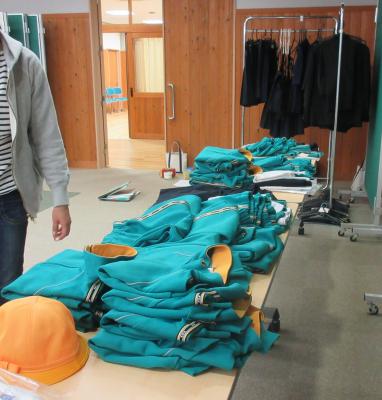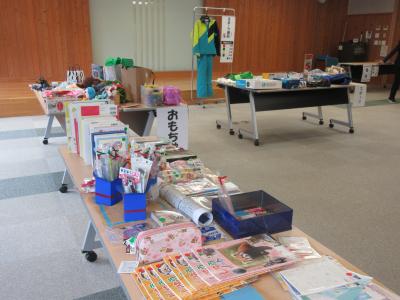 明日10時から育友会バザーを行います。白嶺祭実行委員で会場準備を行っています。皆さんの提供のおかげで、たくさんの品が集まっています。
