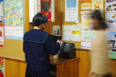 中学校のアルペンスキー部とクロスカントリースキー部は、白峰の競技場へ今日も練習に行きます。学校からスクールバスで30分ほどで到着します。午前中練習し、昼頃学校に戻り、学校から自宅のある各バス停にバスで帰ります。