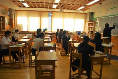 中学3年生は入試に対応できる応用力や実践力を養うため、11月から3月上旬までの火曜と金曜日に、7限目の授業を行います。また、希望する生徒は放課後に教室に残って自主学習も行うことができます。今日は1回目の7限授業を行います。