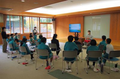 道徳 加賀市山中温泉在住、重要無形文化財の木工芸家、川北良造さんについての教材で授業を行っています。木工芸についての映像資料も視聴しています。