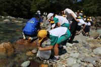 3年 「イワナ放流体験」 水産資源や河川の大切さを知り、自然環境の保全や水中の生き物への関心を高めることを狙いとした事業です。イワナを観察したり生態についての話を聞いたりした後、イワナ約3,000尾を放流しました。