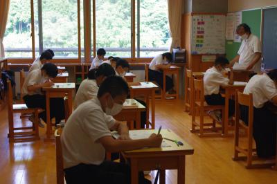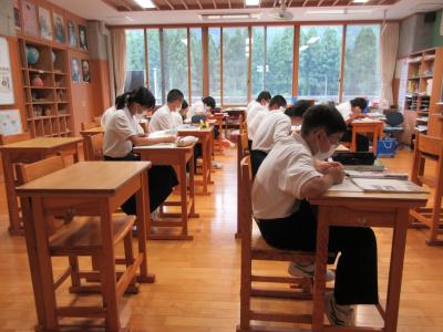復習テストを行っています。午前の国語、社会、数学はなかなか手強かったとの声が。努力の成果を発揮できるといいですね。