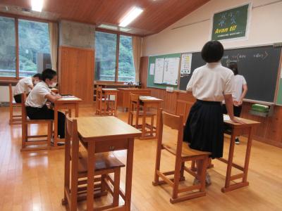 始業式では校長先生から、休業中の豪雨による近隣の被害状況や、普段穏やかな手取川が急変したことから自然の恵みと危険について、また金沢出身の力士である炎鵬が、相撲界一小さい体であるというハンデを乗り越えて活躍していることから、白嶺小中学校の児童生徒も、2学期の学習や行事や大会で、苦手なことであっても挑戦してみて、自信や成長につなげていきましょうとお話ししています。