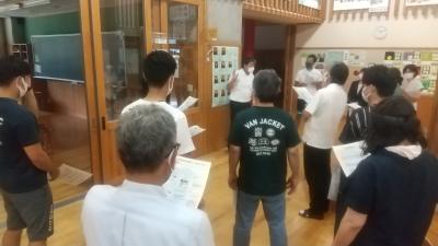 中学校3年生は、運動会の準備で登校し、団の踊りについて話し合っています。