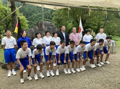 白山市桑島で日本初の植物化石を発見したドイツ人地理学者、ヨハネス・ユストゥス・ライン博士の功績を顕彰するライン祭に出席しています。