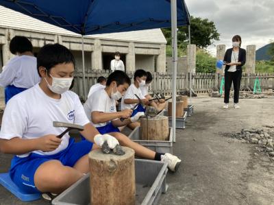その後、白山恐竜パーク白峰で化石発掘体験を行っています。地元の地形や地質について改めて学ぶよい機会となっています。