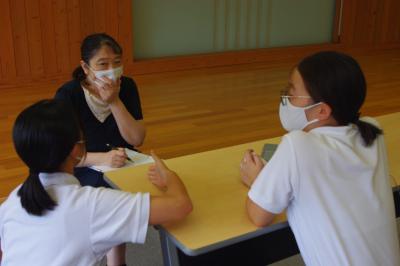 総合的な学習の時間 全国ジオのリハーサルを行った後、先生達からアドバイスをもらっています。