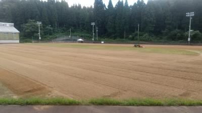 運動会練習に向けて、部活動終了後にグランドの整備を先生たちが行っています。