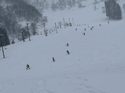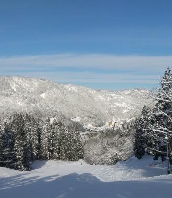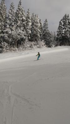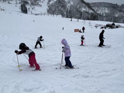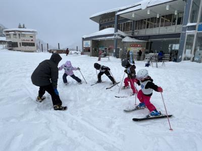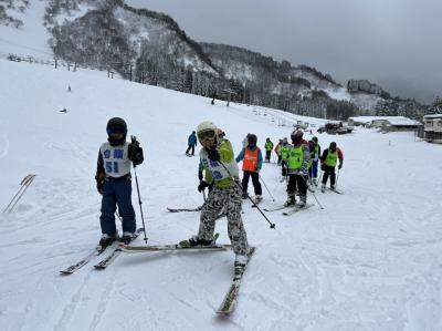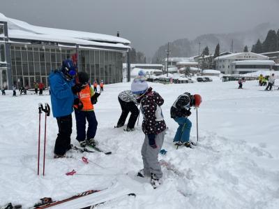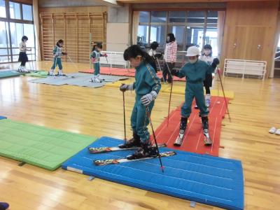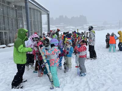 小学校はスキー体育の1回目です。一里野スキー場でスキーを滑っています。