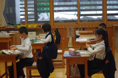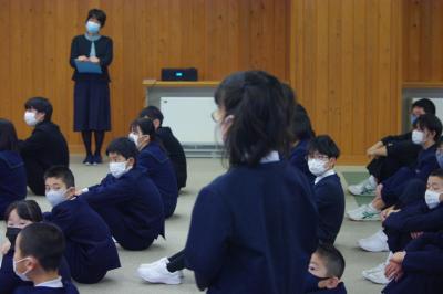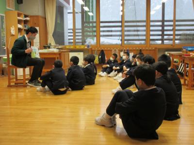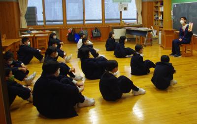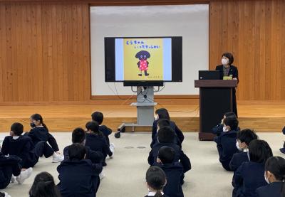 小学校の朝読書では、先生が児童に絵本を読む「おはなしプレゼント」を行っています。