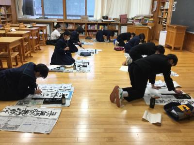 学校の代表選手は県駅伝に出場しています。学校の部活動関係の掲示板には、先生が作った選手を鼓舞するポスターが貼られています。がんばれ!