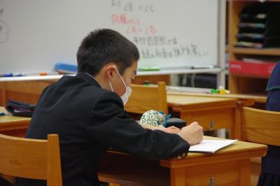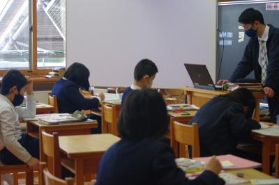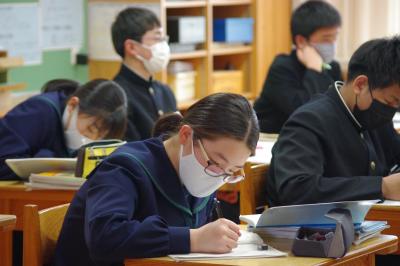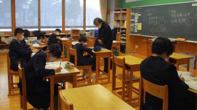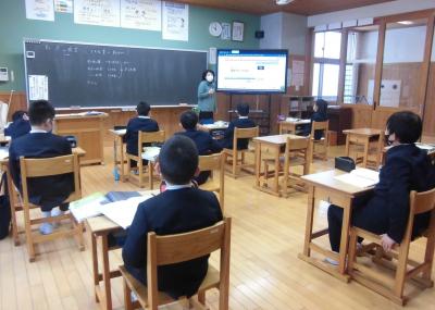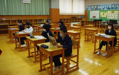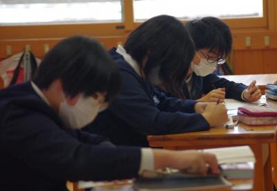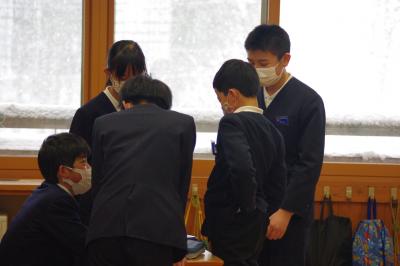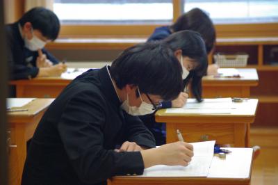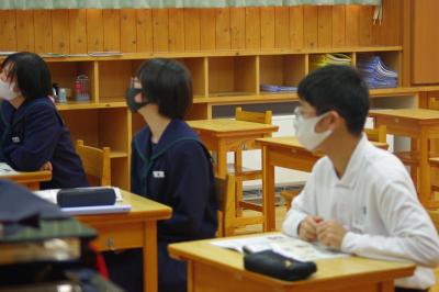 入試に向けての注意点を確認しています。3年生は月曜日からオンライン学習になります。