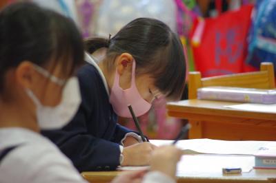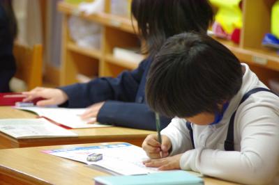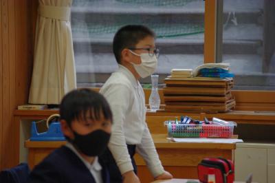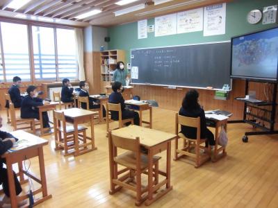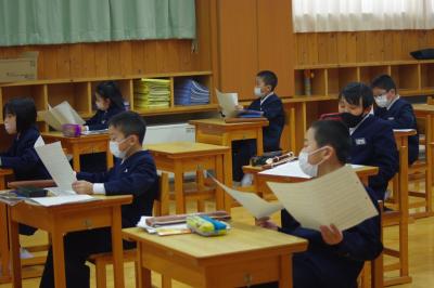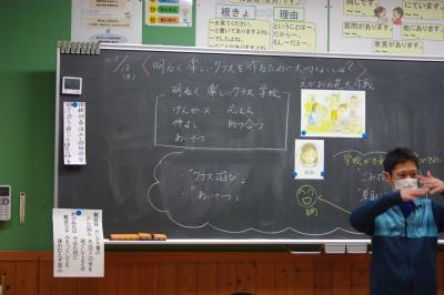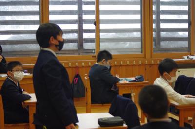 小学校5年生は6限目に、学習発表会で発表したことを紹介し合っています。