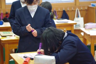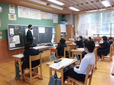 小学校6年生は6限目に、中学校の理科の授業を体験しています。