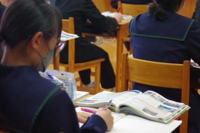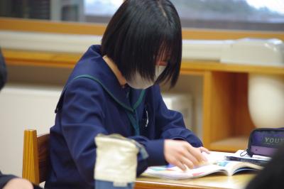 英語 教科書の英文を、日本語訳と照らし合わせて読み、単語を確認しています。