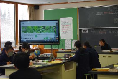 総合的な学習の時間 説明に合う写真やアニメーションを入れるなど、プレゼンの仕上げを行っています。